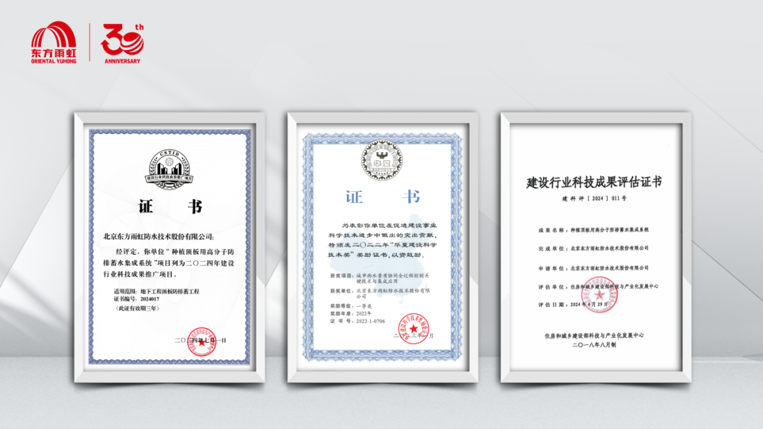 这份凝聚多年的技术积淀的创新成果,不仅有效突破种植屋面长期存在的技术瓶颈,先后荣获《华夏奖》《建设行业科技成果评估证书》《2024年科技建设行业科技成果推广项目证书》等权威认证,更以其在耐久安全、健康实用与经济集约方面的设计理念与技术路径,与“好房子”建设目标高度契合。