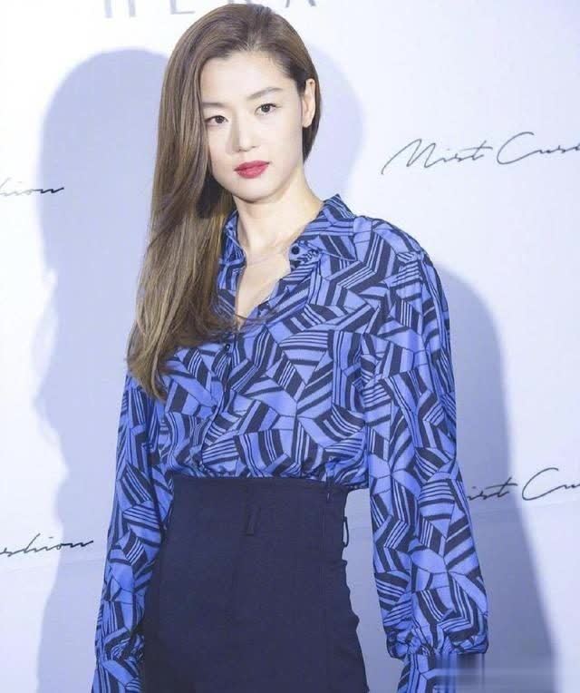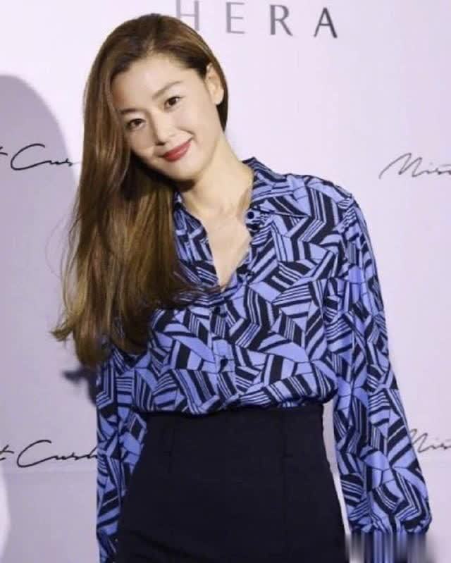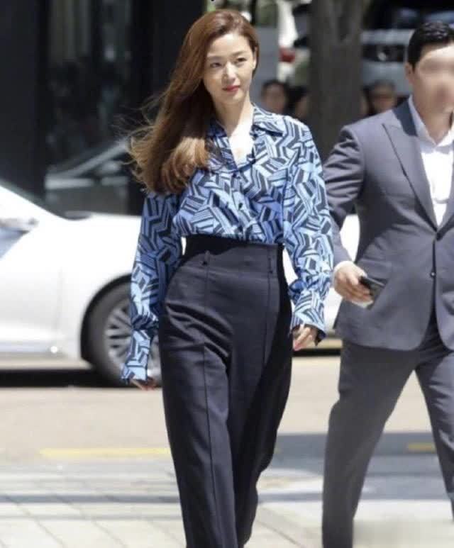 很多中年女人一看到印花就头疼,总担心一不小心就穿成了“妈妈款”,要么显老气,要么显得花哨。但全智贤这一身印花衬衫,真的给我们做了个最完美的示范,印花也能穿出高级感,还能把肤色衬得透亮。